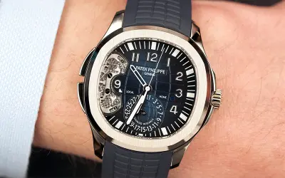 پتک فیلیپ در بخش «تحقیقات پیشرفته» (Advanced Research) خود، آکوانات تراول تایم رفرنس 5650G را معرفی کرد. این ساعت نه تنها به دلیل طراحی جذابش، بلکه به خاطر یک نوآوری فنی برجسته بود: استفاده از یک مکانیزم انطباقی (compliant mechanism) از جنس فولاد برای تنظیم منطقه زمانی دوم. این قطعه که از یک تکه فولاد ساخته شده بود، جایگزین ۱۲ قطعه مجزا میشد، اصطکاک را از بین میبرد و نیاز به روغنکاری را حذف میکرد. این یک گام مهم در جهت افزایش دقت و دوام ساعتهای پیچیده بود.