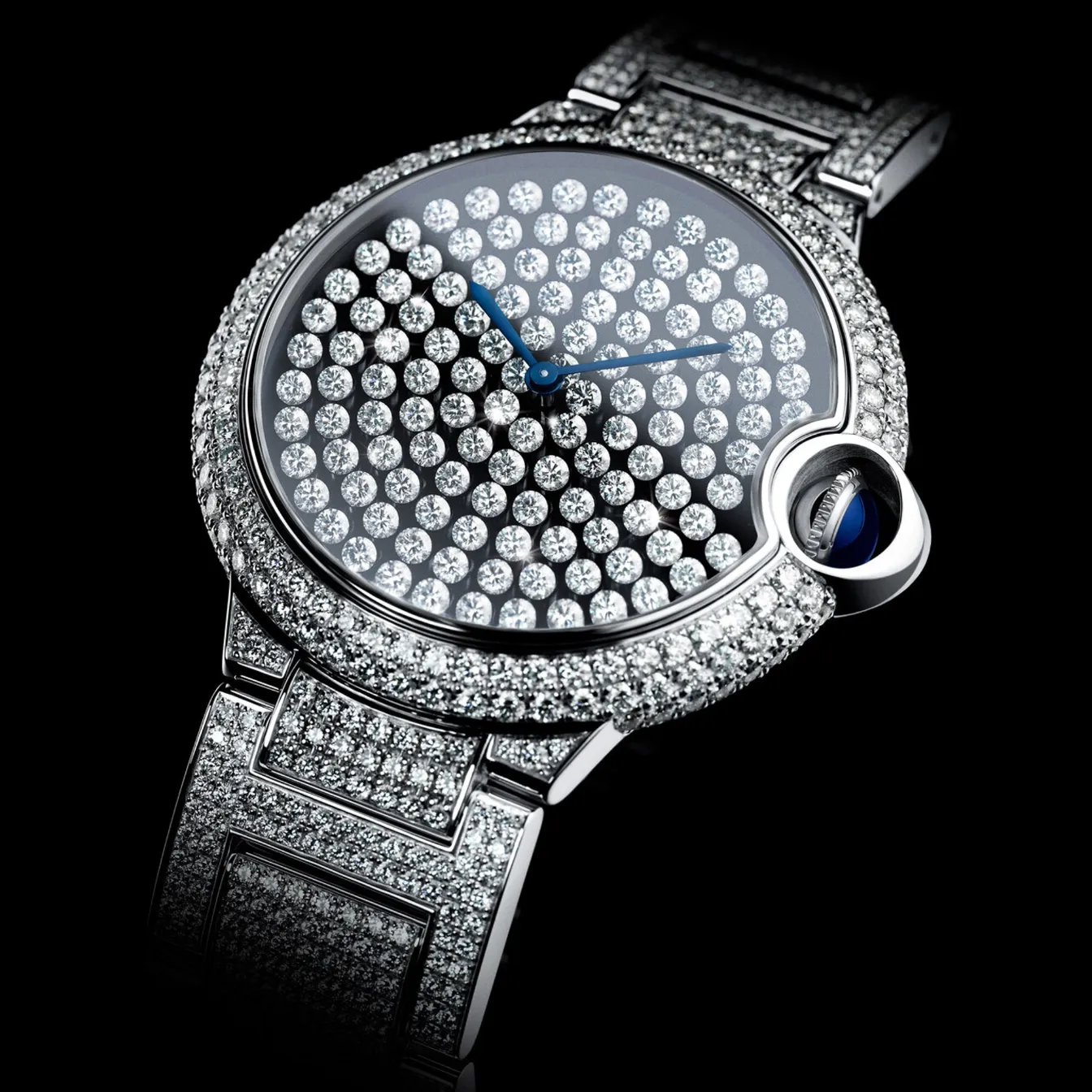 هنر جواهرسازی در خدمت ساعت: کارتیه در قلب خود یک جواهرساز است. این تخصص به آن اجازه میدهد تا ساعتهایی با ظرافت، تناسبات بینقص و جزئیاتی مانند تاج یاقوت کبود (Blue Cabochon) خلق کند که کمتر برند ساعتسازی قادر به تقلید آن است.