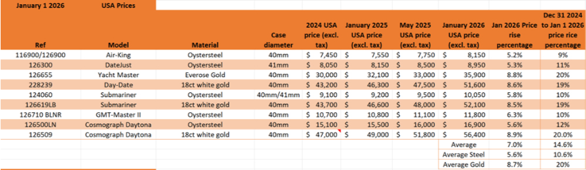 رولکس طبق سنت همیشگی‌اش، سال جدید را با تغییر لیست قیمت‌ها آغاز کرد.